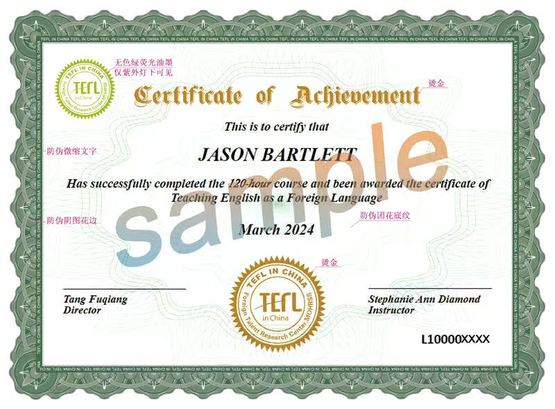 外籍语言教师(英语类)职业培训项目(Teaching English as Foreign Language in China, TEFL in China)由人力资源和社会保障部国外人才研究中心负责开发,该项目培训证书在全国范围内被广泛认可。