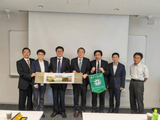 代表团还参访了日本地球与环境战略研究所,该研究所川上局长出席接待并致辞欢迎,刘宪兵主任介绍研究所工作职能和主要研究领域,首席研究员金振博士重点介绍了其环保领域科技项目成果。经洽谈,该研究所十分乐意接受我校相关研究领域师生参与联合研究与实地交流。