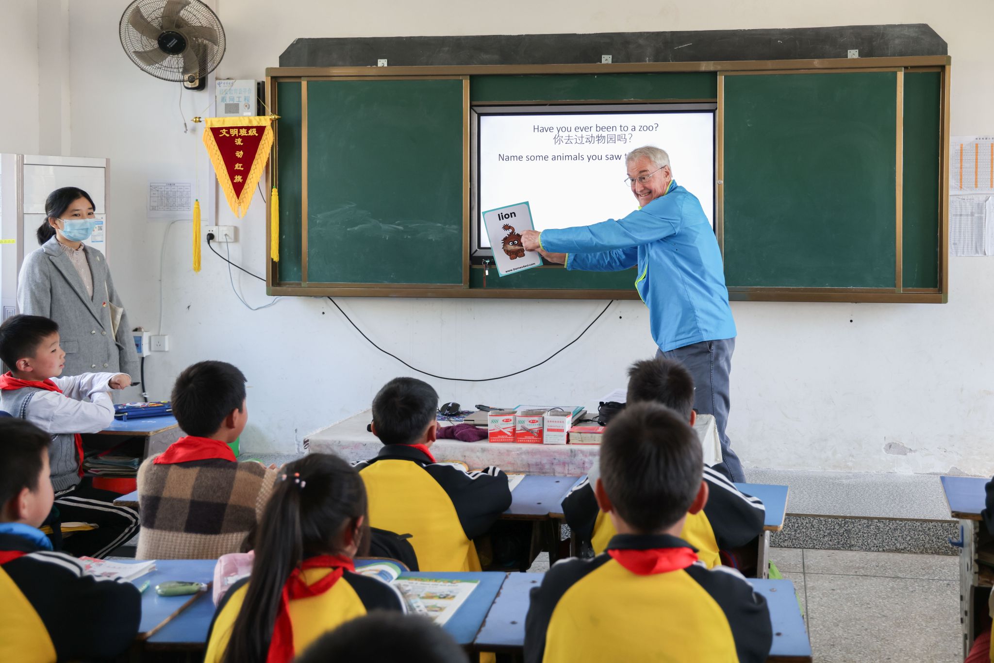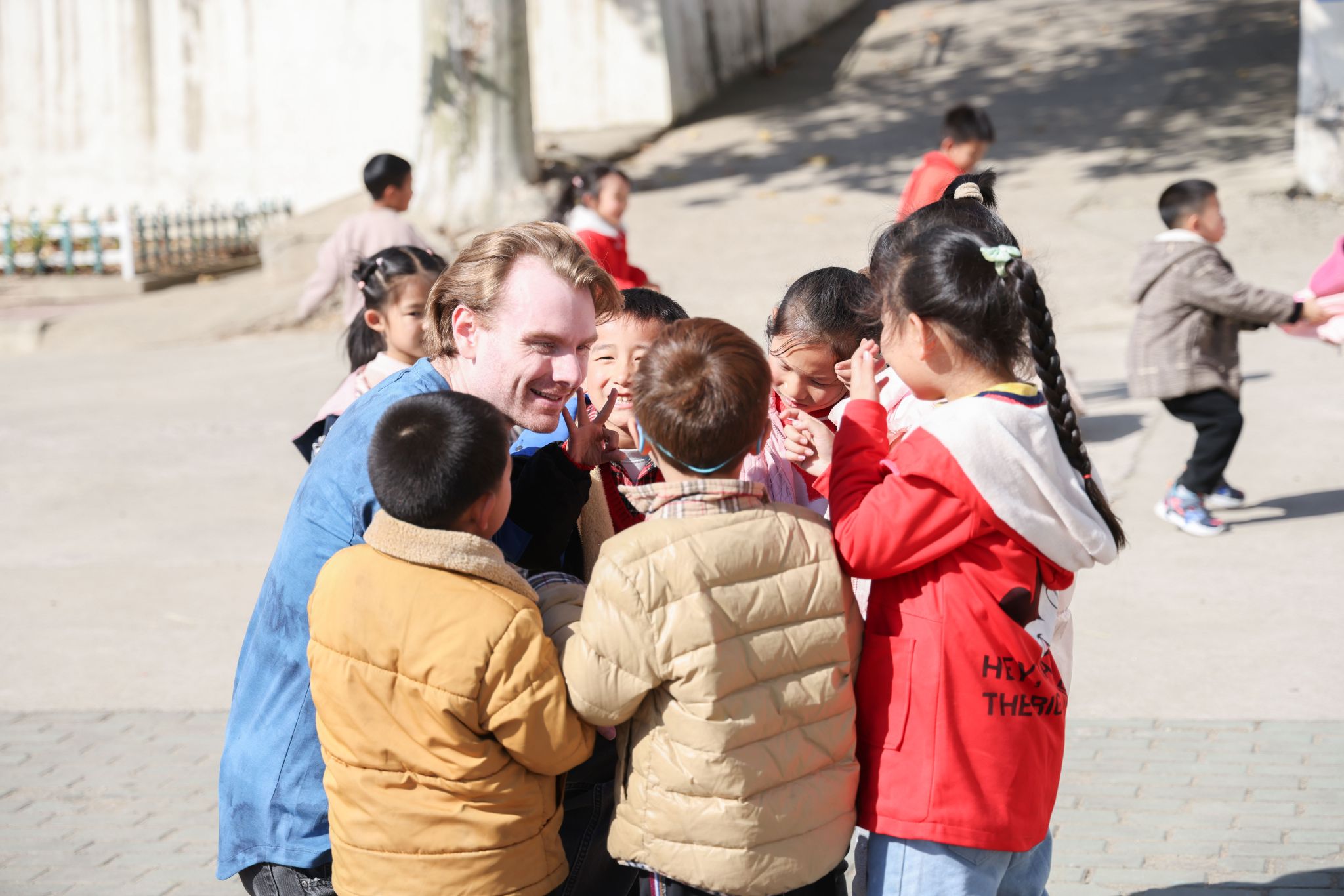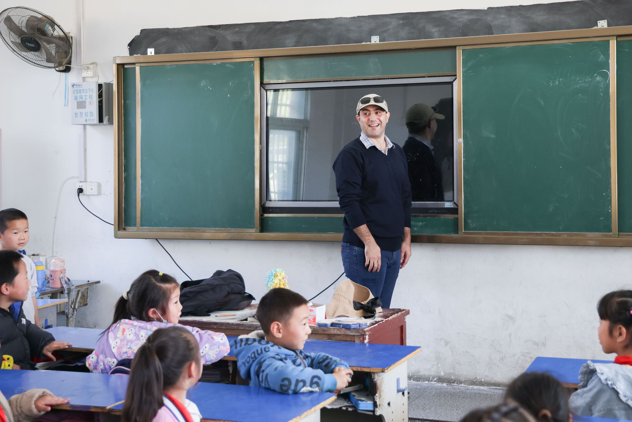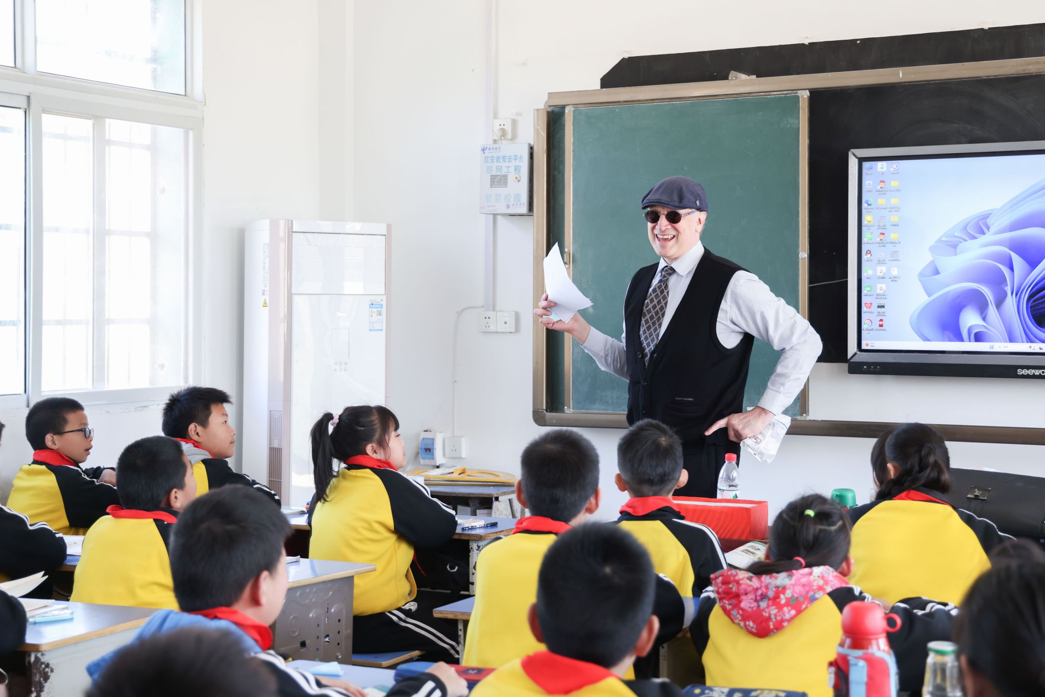 捐赠活动结束后,6名外籍教师分头进入各年级课堂,为学生们上了一堂内容丰富的国际视野体验课。外教们新颖的授课方式,活泼的课堂氛围,幽默风趣的表演,让孩子们很快和外教拉进了距离。从初见到“洋老师”的羞涩、不敢开口说英语到后面和外教大胆对话、玩游戏、唱英文歌,孩子们越来越活跃,课堂氛围越来越热烈。两节课很快结束了,可是学生们久久不舍外教离开。