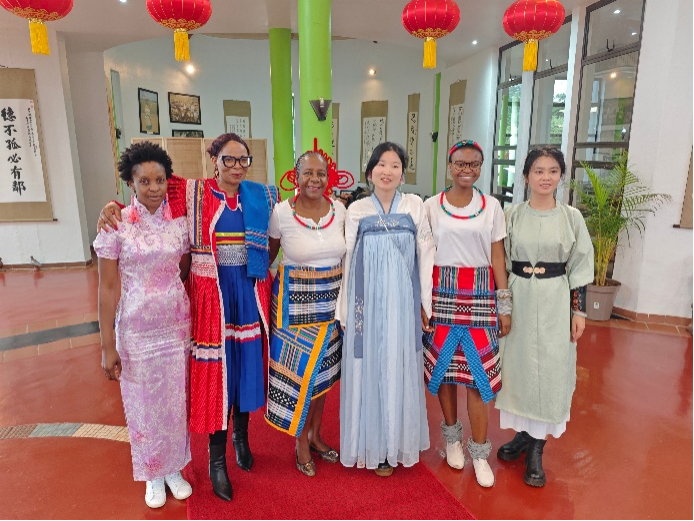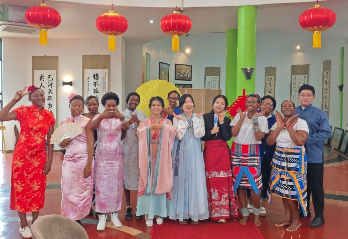 11月8日,绿色科技孔子学院举办了第二场主题为汉服的文化沙龙。志愿者教师王雅君主持本场沙龙。孔子学院全体职工穿上了中国传统服饰,文达大学师生也穿着南非传统服饰前来参加活动。他们一起交流了中国与南非传统服饰的特征与意义,并讨论了全球化时代,传统文化的传承与创新问题。讲座后,所有参与者一起设计了汉服图案,充满创意的作品将中南两国文化联结在一起。