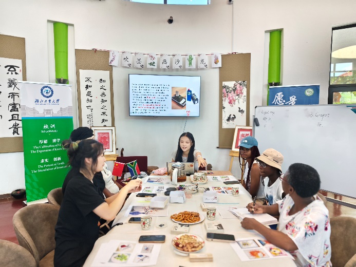 11月1日,GTCI举办了第一场中国角文化沙龙。公派教师张多主持了本场沙龙。她向参与活动的师生介绍了青花瓷的悠久历史、经典纹饰以及它们的象征意义。她通过讲述青花瓷在全球瓷器文化中的重要地位,让活动参与者们对青花瓷的艺术之美和深远影响有了更为直观的认识。在手工活动环节,参与沙龙的师生一起制作了融合中国与南非纹饰风格的青花瓷纸盘画。