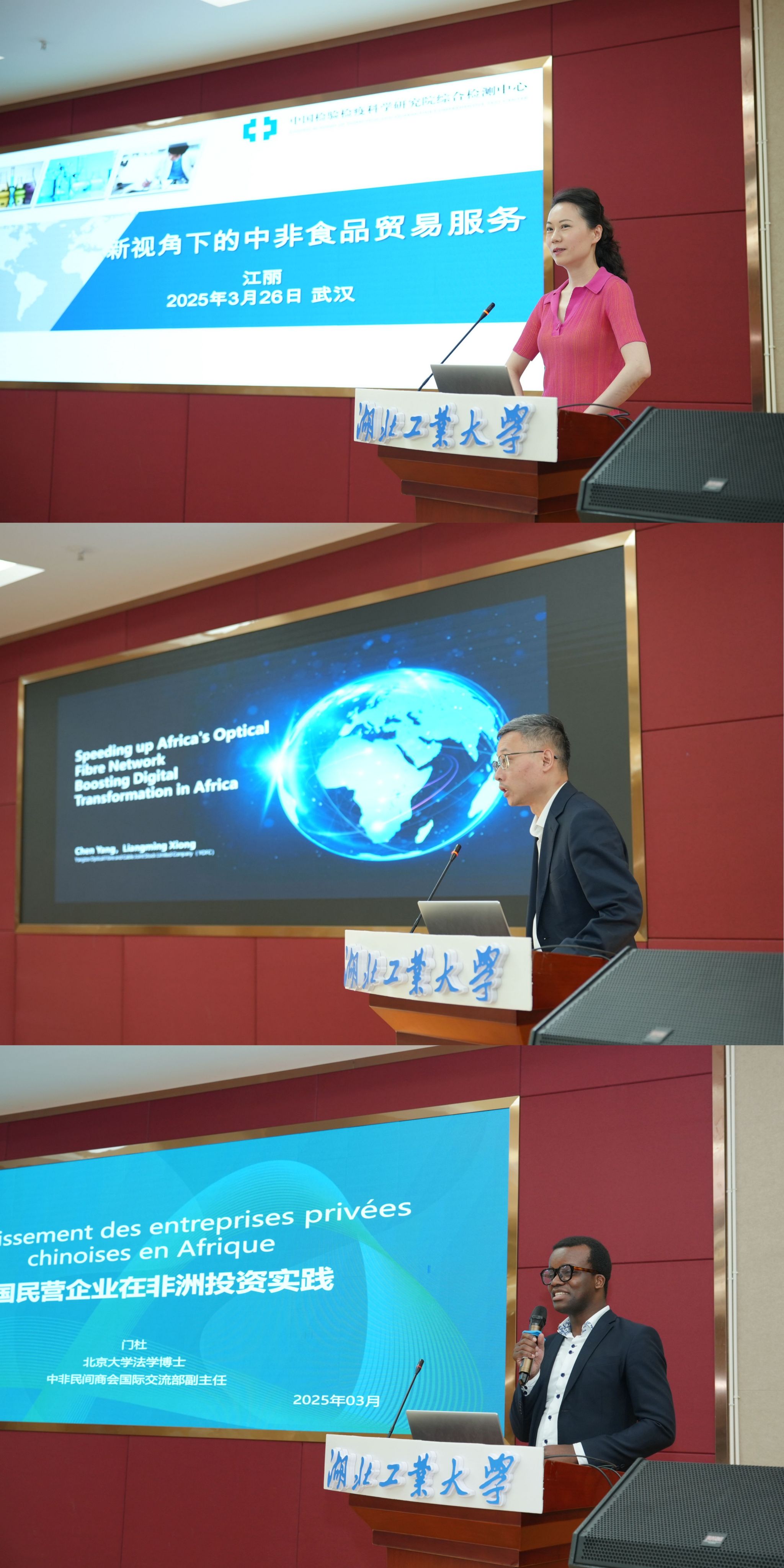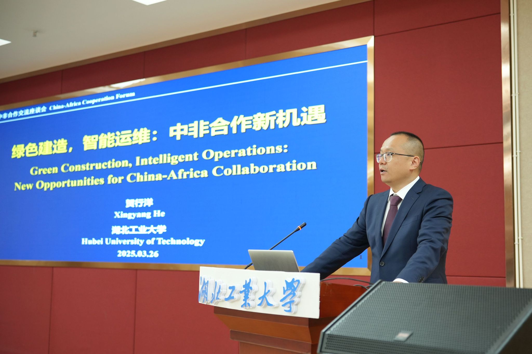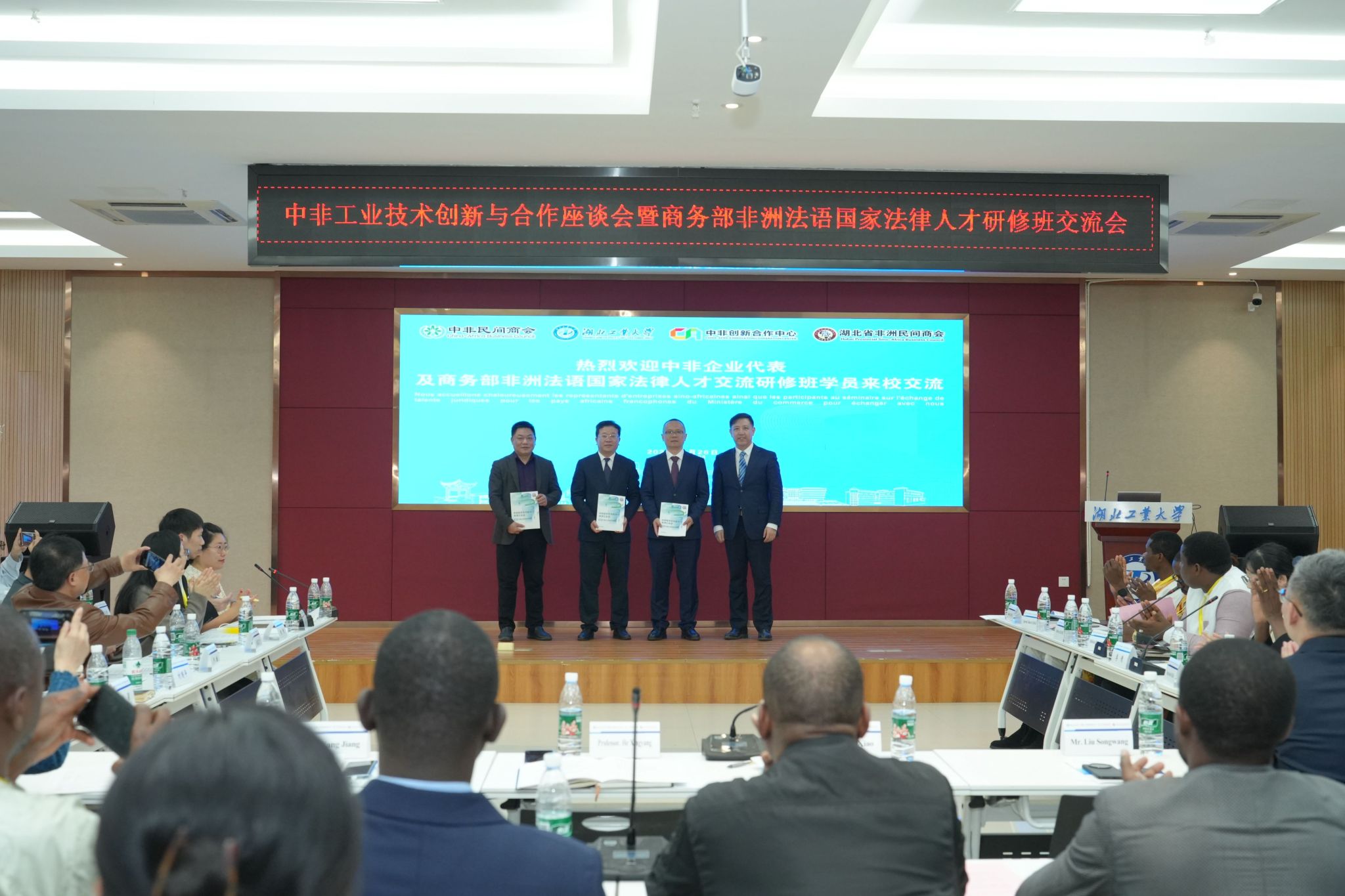 3月26日下午,由中非民间商会、湖北工业大学联合主办的“中非工业技术创新与合作座谈会暨商务部非洲法语国家法律人才交流研修班学员交流会”在学校机械楼一楼会议室隆重举行。会议以“共建中非‘十大伙伴行动’,加速推进中非高质量发展”为主题,围绕绿色建造、食品贸易升级、数字化转型及民间投资等议题展开深度对话,共绘务实合作新蓝图。会议得到了商务部国际商务官员研修学院、中非创新合作中心及湖北省非洲民间商会的大力支持。中非民间商会执行秘书长王江、中非创新合作中心主任张晓、湖北工业大学副校长贺行洋、湖北省非洲民间商会执行会长刘松旺出席会议。中非政企学界专家、学者、企业家代表50余人以及来自十余个非洲法语国家的30余名官员(研修班学员)参加座谈会。