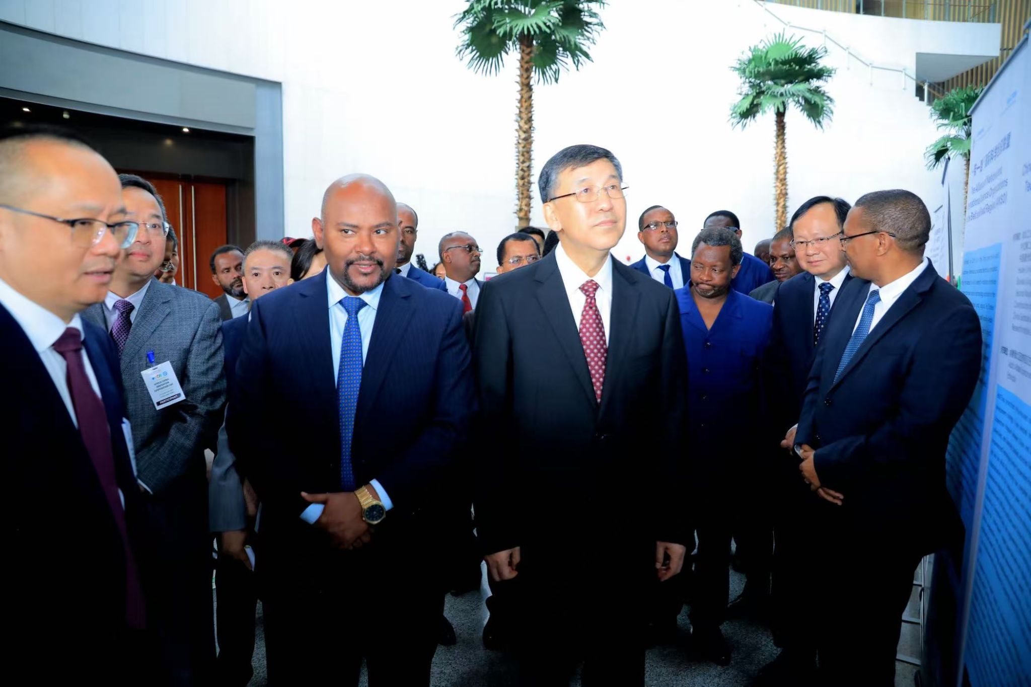 开幕式后,科技部部长阴和俊在中非创新合作成果展示现场巡展,听取我校关于与亚的斯亚贝巴科技大学共建“中国-埃塞俄比亚绿色建造创新技术中心”的汇报,并赞许绿色建造是中非合作领域十分具有发展前景的方向。