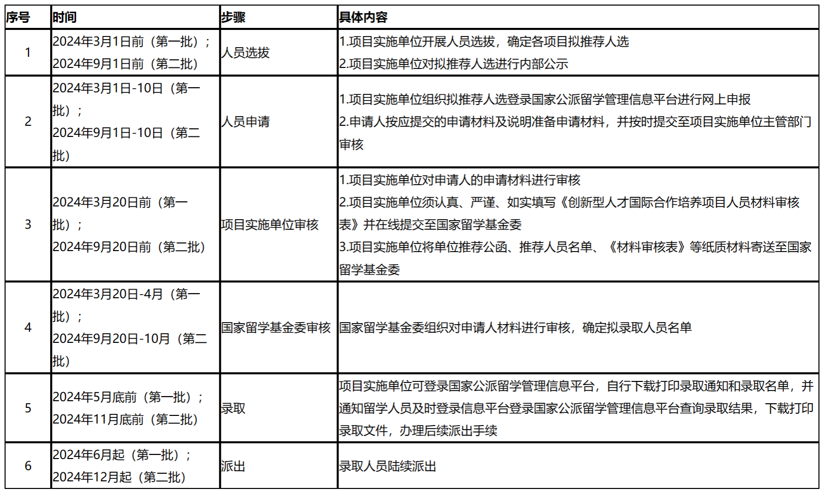 根据国家留学基金委《关于做好2024年创新型人才国际合作培养项目第一批人员申报工作的通知》,学校将启动本年度第一批项目人员遴选及选派工作,现将项目有关安排通知如下:
